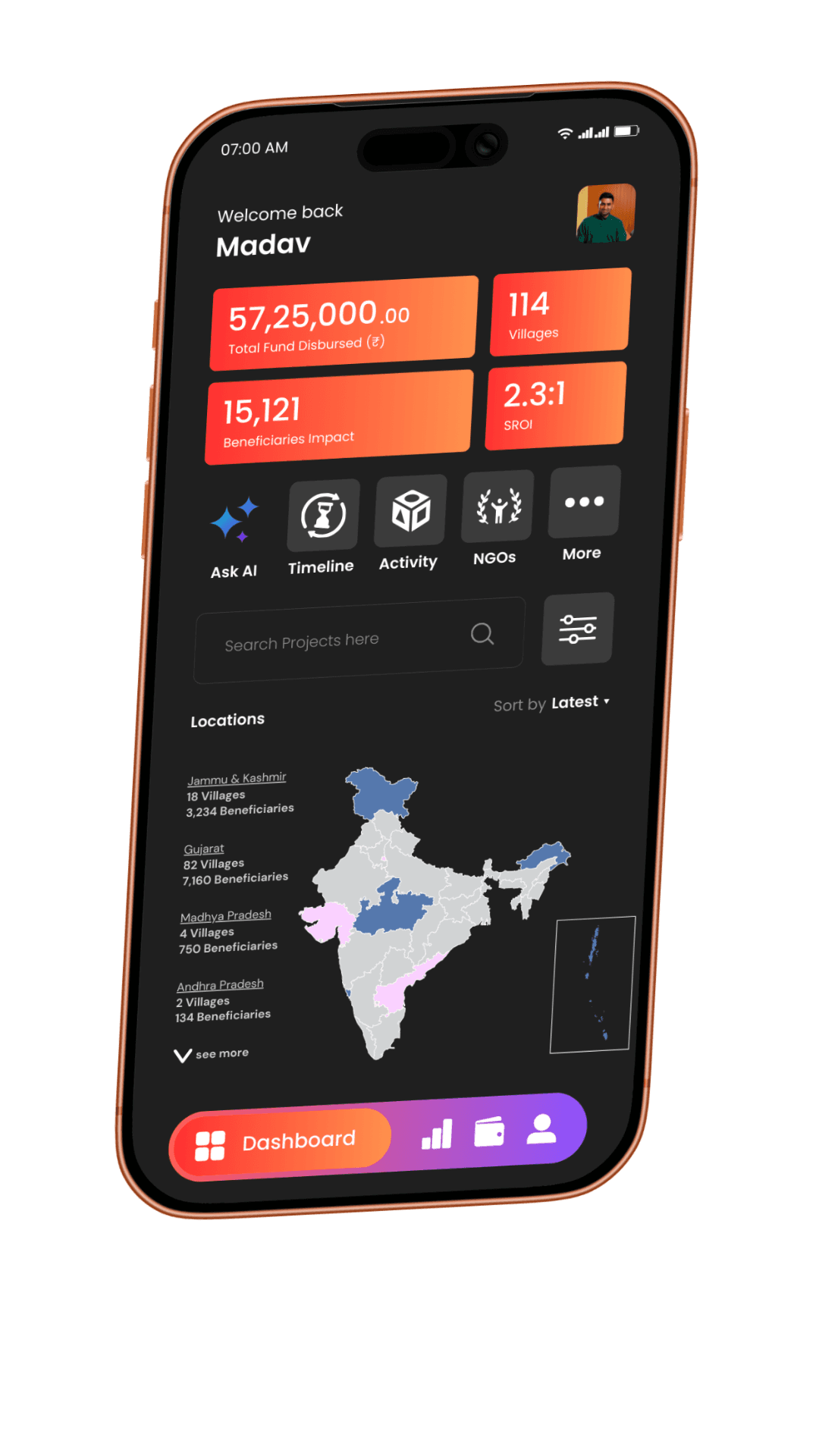 Simplify CSR planning, monitoring, evaluation, and reporting — all from one AI-powered dashboard.